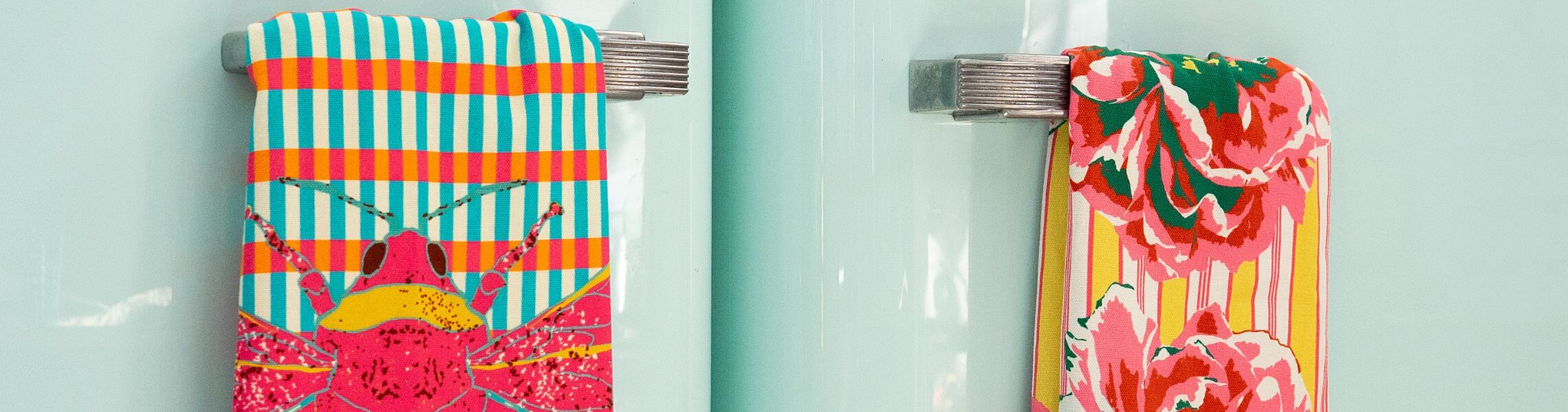 COLLECTION: Summere 2026 (Starts Shipping April 15th 2026) Fresh for spring: 100% cotton towels in vibrant colors, with a playful rickrack trim, contrast stitching, and a built-in loop. Because details matter. Lynette Reed Studio kitchen tea towels are made from 100% cotton